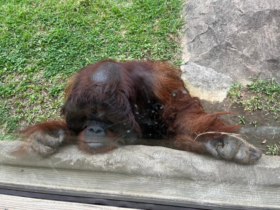 ガラスに向かってずっとお昼寝したりぐでっと寛いでいたオラウータン。
