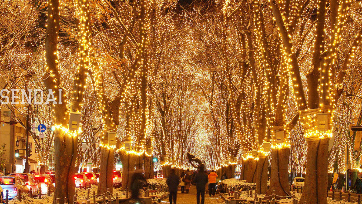 イルミネーション全国第6位の「SENDAI光のページェント」は、ケヤキ並木が温かい光に包まれる、仙台の冬を代表するイルミネーション。