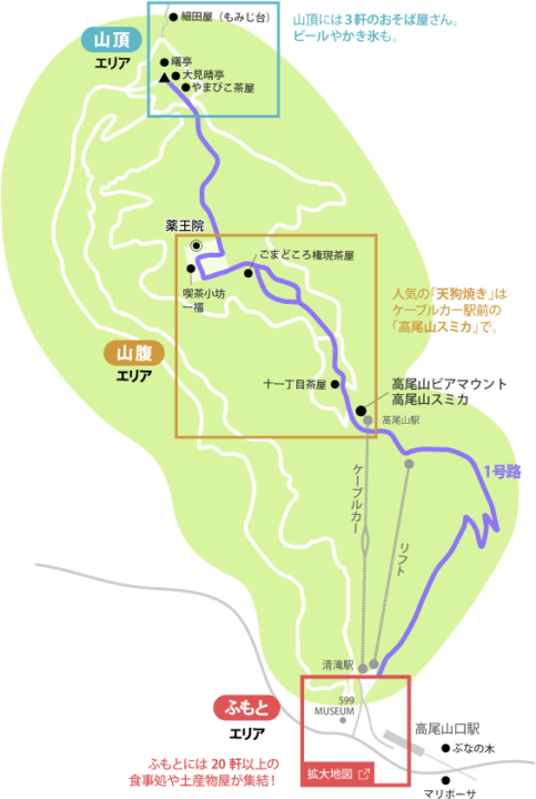 山頂付近でそばを食べるのも高尾山の醍醐味ですが、