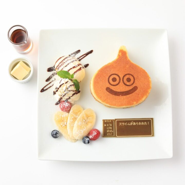 白を基調としたオシャレカフェで、スライムのパンケーキやロトの剣のパフェなどドラクエメニューがたくさんあり、ドラクエマニアには最高。
