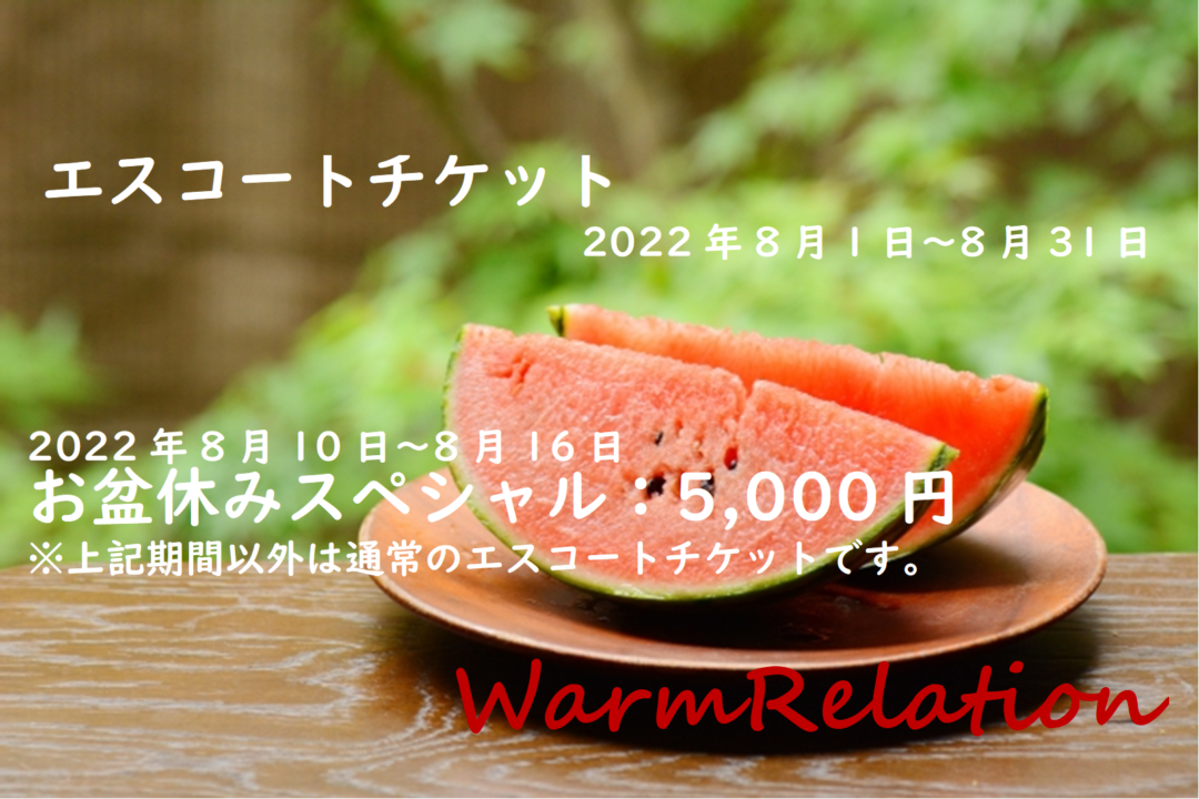 日ごろご愛顧いただいているお客様、そしてご新規のお客様にもWarmRelationからささやかなプレゼントとして「エスコートチケット」を8月もお贈り致します🎁