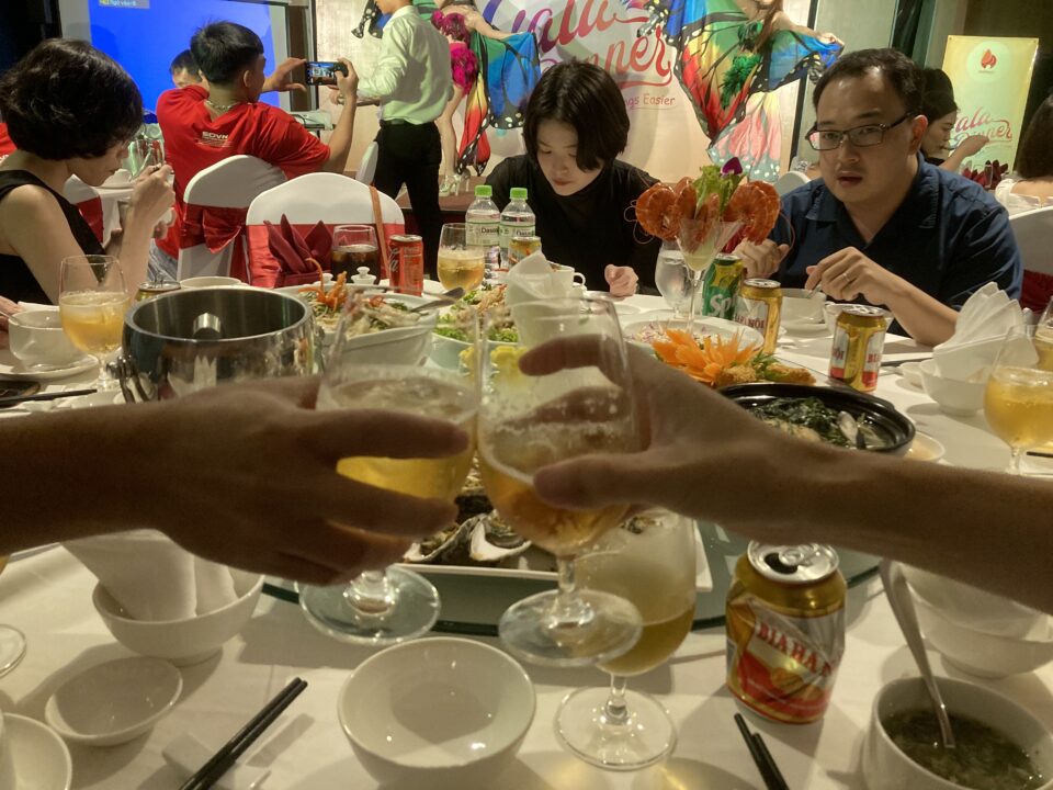 夜は会社の方達と会食。ホテルの最上階で上品な所なのに社員のベトナム人達に死ぬ程飲まされてあまり記憶がない。