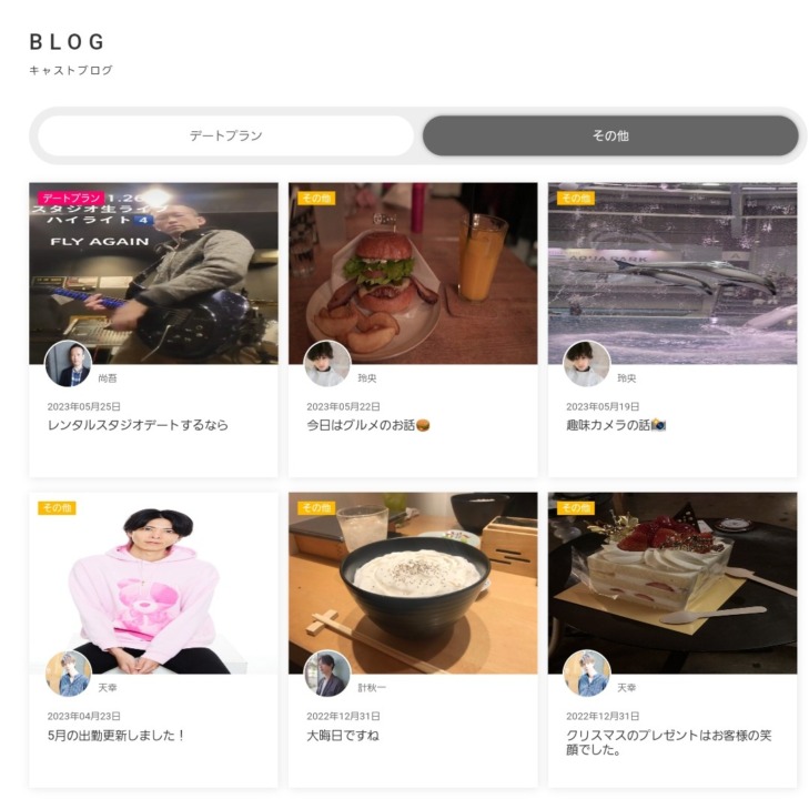 そのため、キャストが日常やデートプランのひらめきなど、ブログにしたいことをすぐにサイト内に反映していますので、「今日のこと」などタイムリーなブログをご覧いただくことができます。