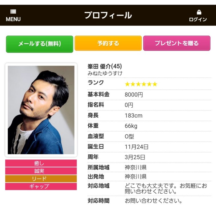 ※2020年12月ランキング1位出張ホスト(キャスト)峯田優介(みねたゆうすけ)さんプロフィール参照