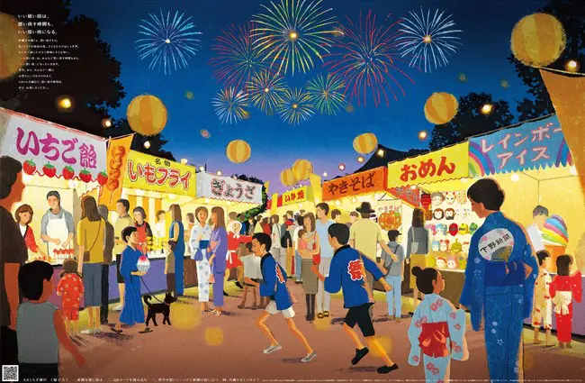 定番中の定番「夏祭り」、金魚すくいに綿あめやかき氷の屋台。