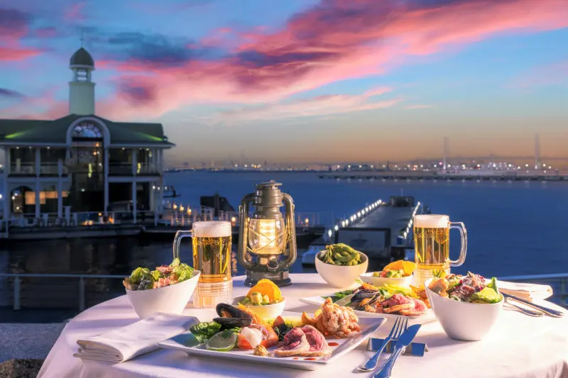 圧巻の眺望が魅力のベイサイドテラスで、心地よく響き渡るラテン音楽と潮風を感じながら、ハイクオリティーなビアガーデンを楽しめるのは「はまビア!」ならでは!