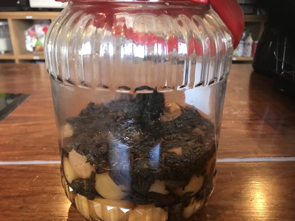 3〜5日ほど天日干しを行い、瓶に戻し、ようやく食べられる状態になりました。