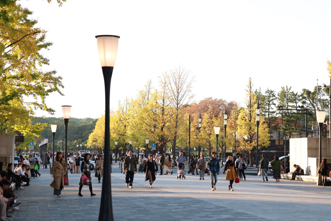 カフェで話しているシーンや服を選んでいるシーンがビフォー。サムネになっている丸の内の写真がアフターです。