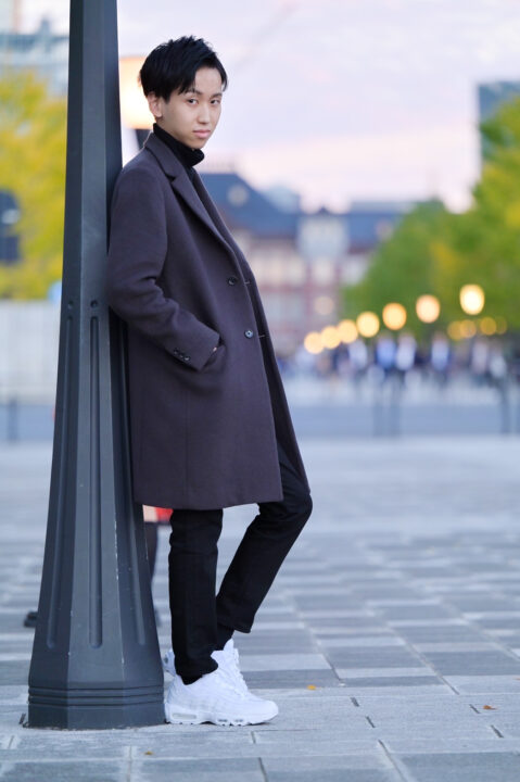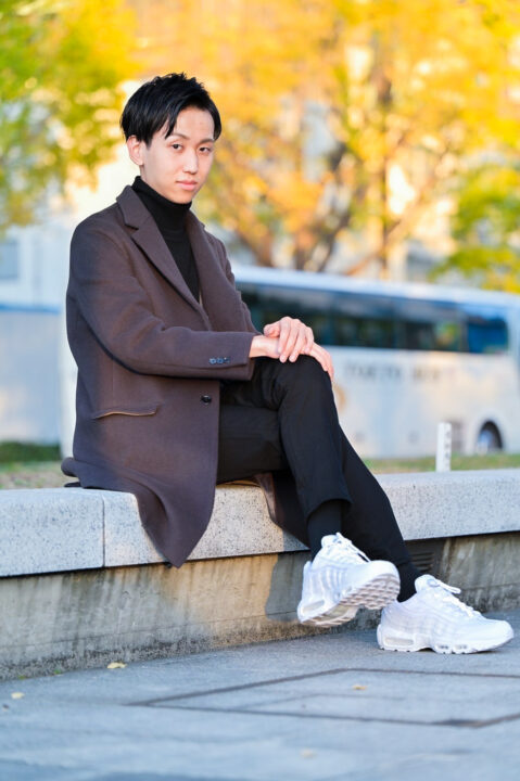 しかし秋冬服はあまり持っておらず、10月に宣材として友人に撮ってもらった写真もズボンの丈が余りすぎていたりとサイズ感の面を中心に課題が露呈します。