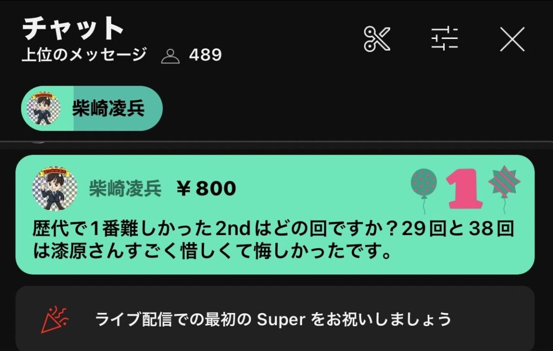 余談ですが、大晦日はSASUKE出場者の中で特に好きな選手である靴の営業マン「漆原裕治」さんがYoutubeでライブ配信をされていて思わずスパチャをしました。